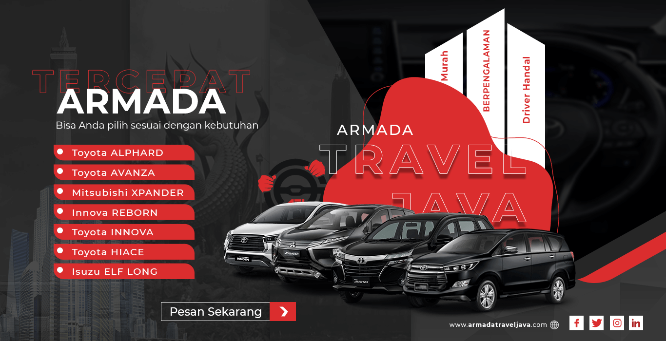 Armada Travel Java merupakan perusahaan yang bergerak dalam bidang penyedia layanan jasa travel antar kota hingga antar provinsi. Anda akan diantarkan langsung oleh driver kami yang sudah berpengalaman dengan beberapa pilihan armada yang bisa disesuaikan dengan kebutuhan diantaranya Alphard, Avanza, Xpander, Innova, Innova Reborn, Hiace, dan Elf Long.